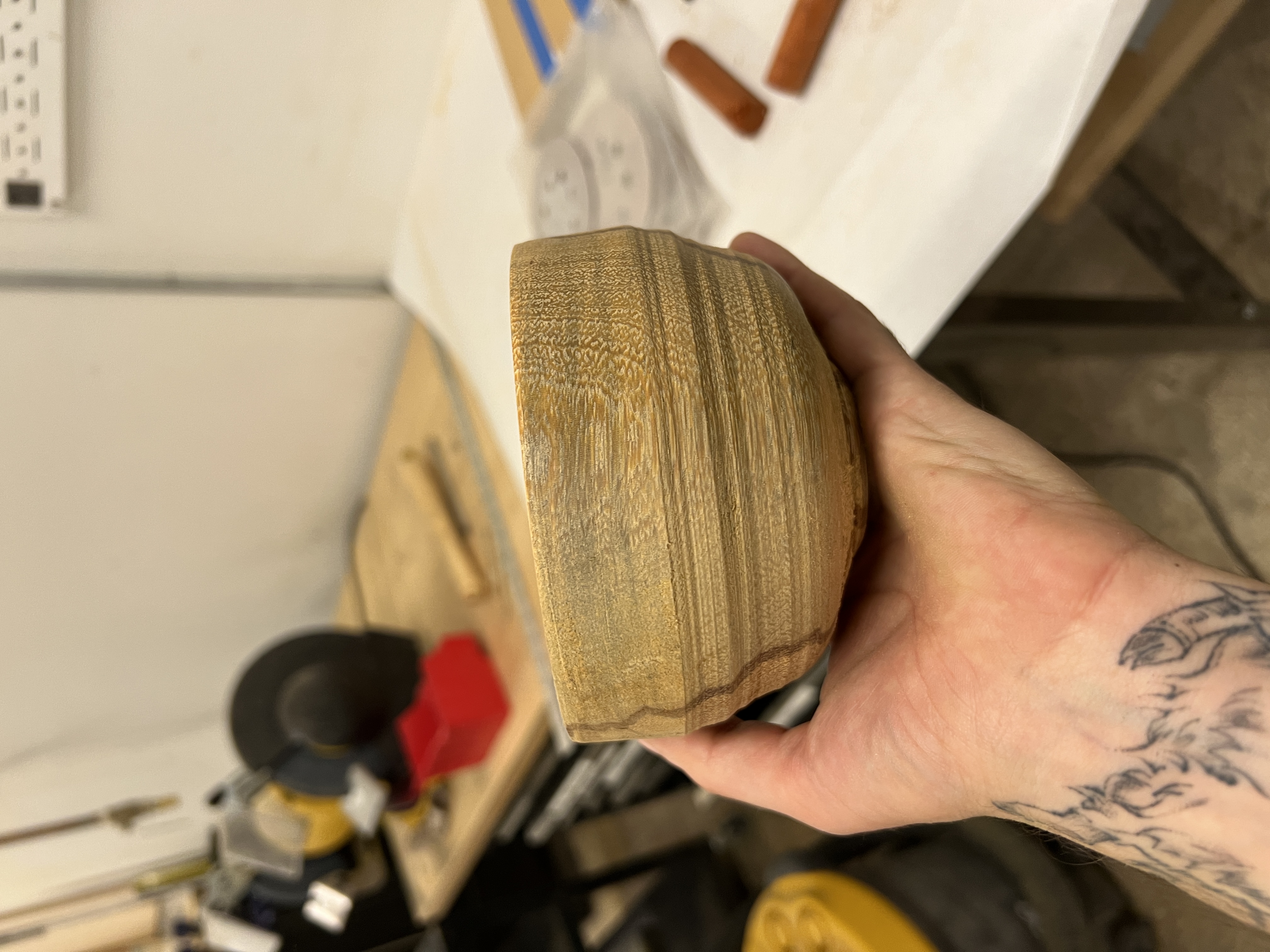 So at this point my hands hurt quite a bit and my nice wood was ruined. I ordered some softer, kiln dried blanks. I at least now feel confident at the setup for turning a bowl so it’ll be all smooth sailing from here. I hope.