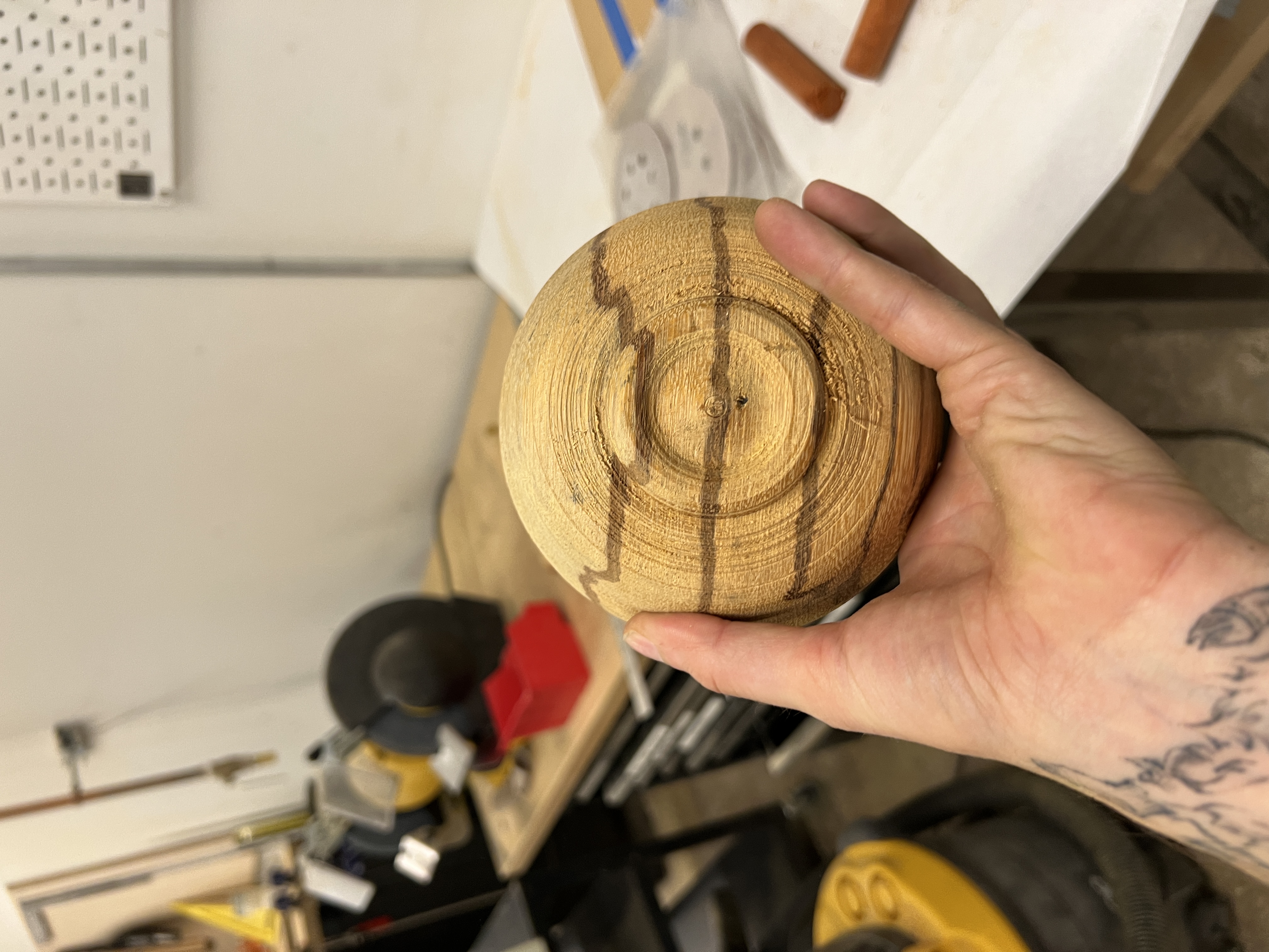 So I learned that turning this green wood was a nightmare. Took me over an hour to get it round.