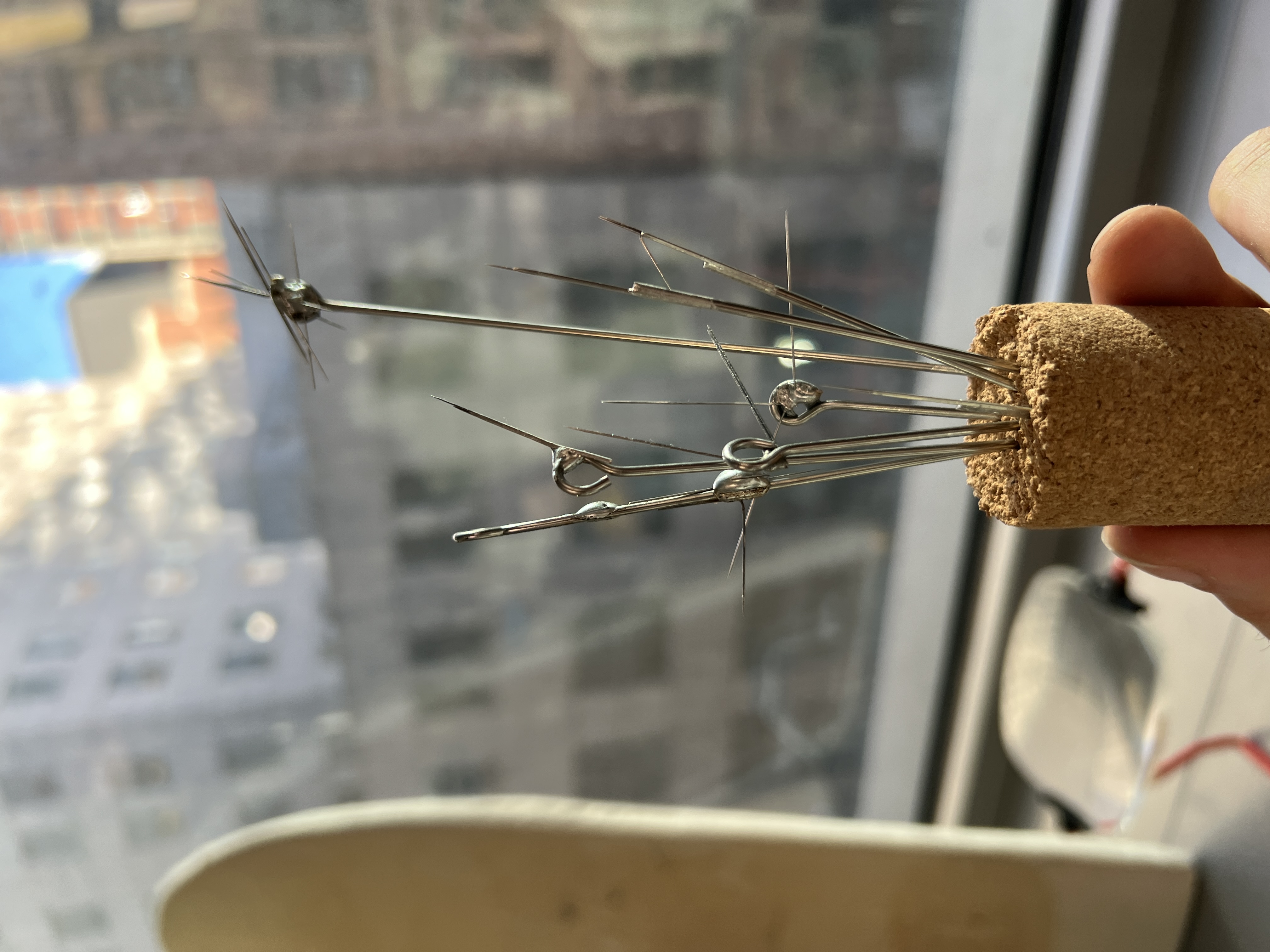 I believe I could lathe some really gorgeous (vases) out of wood, fill that wood with cork, and then form arrangments out of needles and perhaps other disposables uses in the tattooing procedure like rubber bands, grommets, grip tap. I think the more dangerous it is, the better.