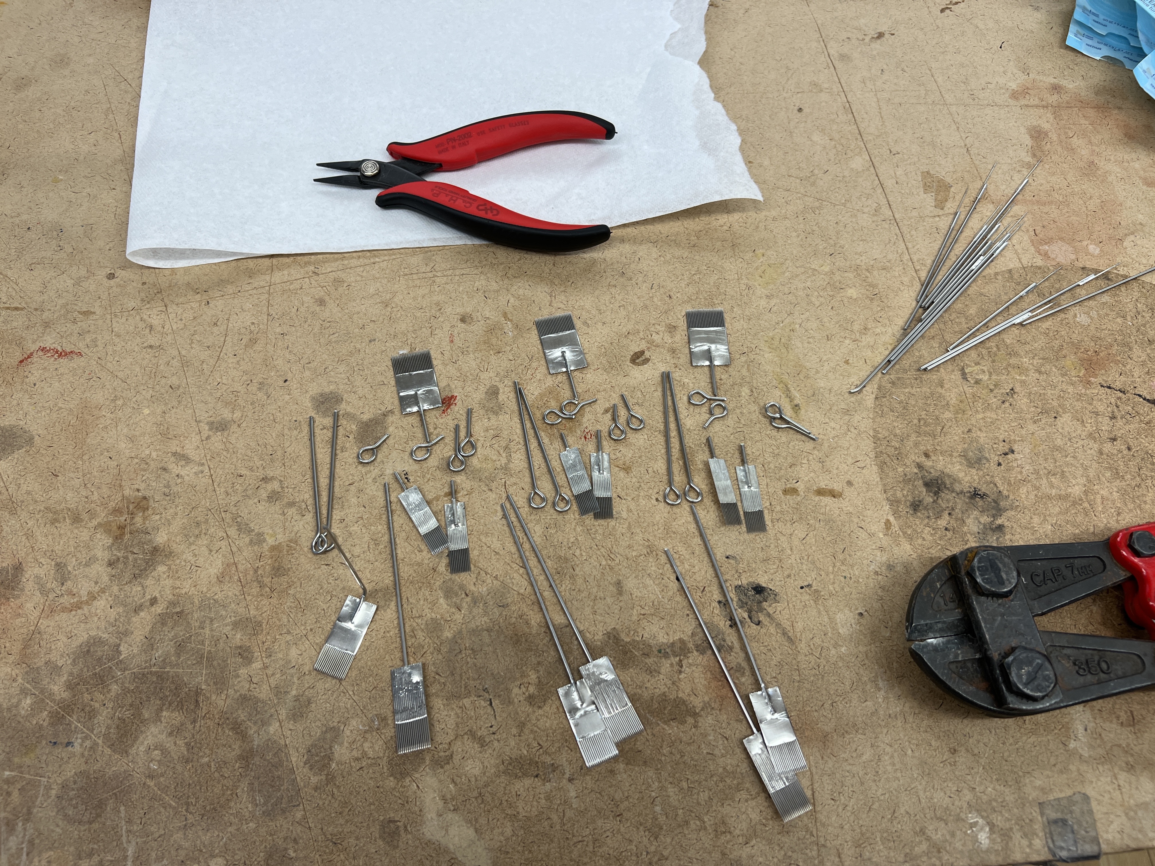 this is the exhausting part. These needles hurt and are tiny and the solder gets complicated the more that are there because I’m dodging getting jabbed. But really liking how crazy spiky they are!