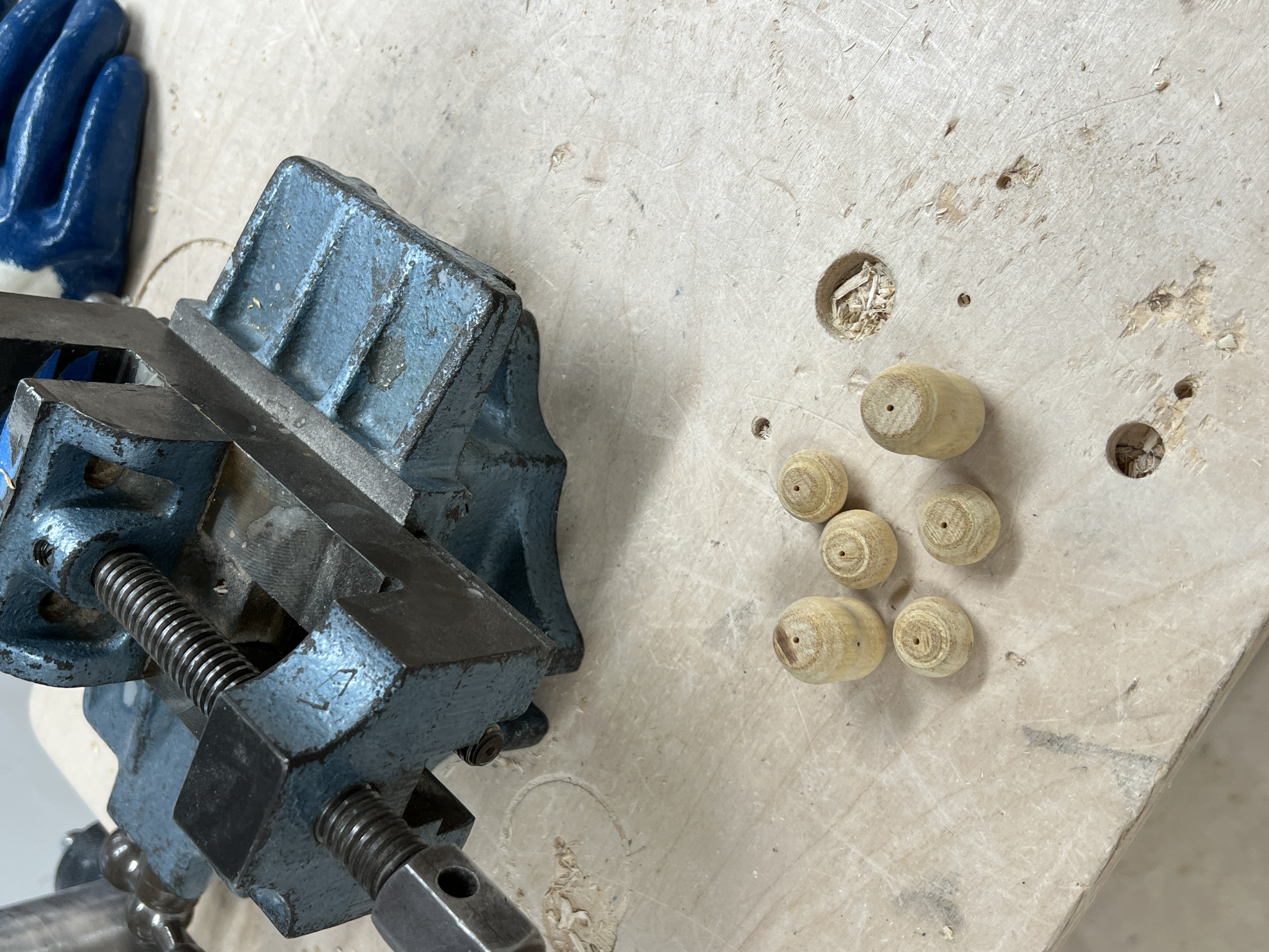 Prepped the wood elements which are forearms and torsos. So much sanding. I should have done it on the lathe when I turned the pieces. Noted for the last batch. Got to use my favorite teeny tiny drill bit in the drill press. I think I’ll need to go a dash deeper for the next batch.