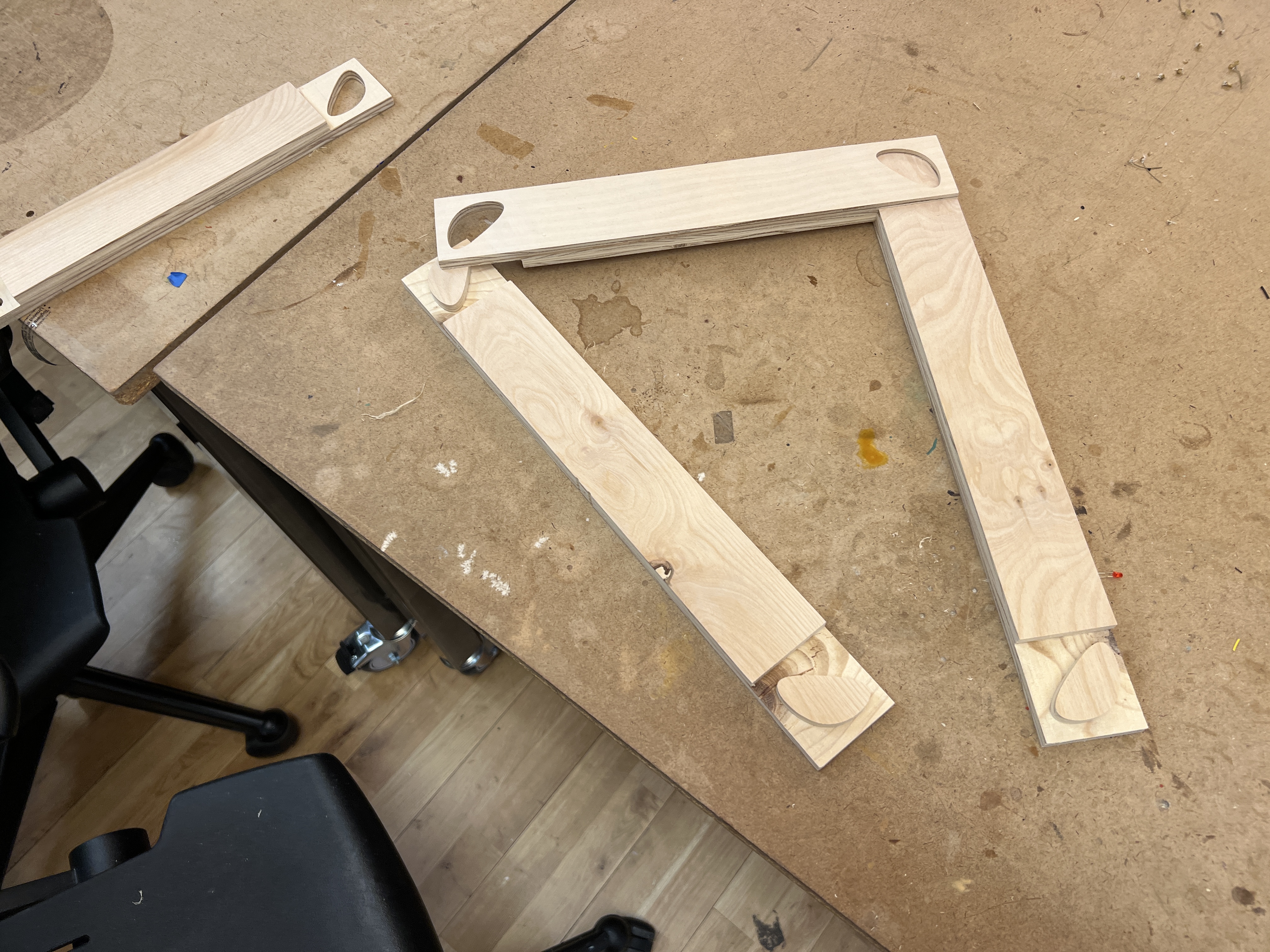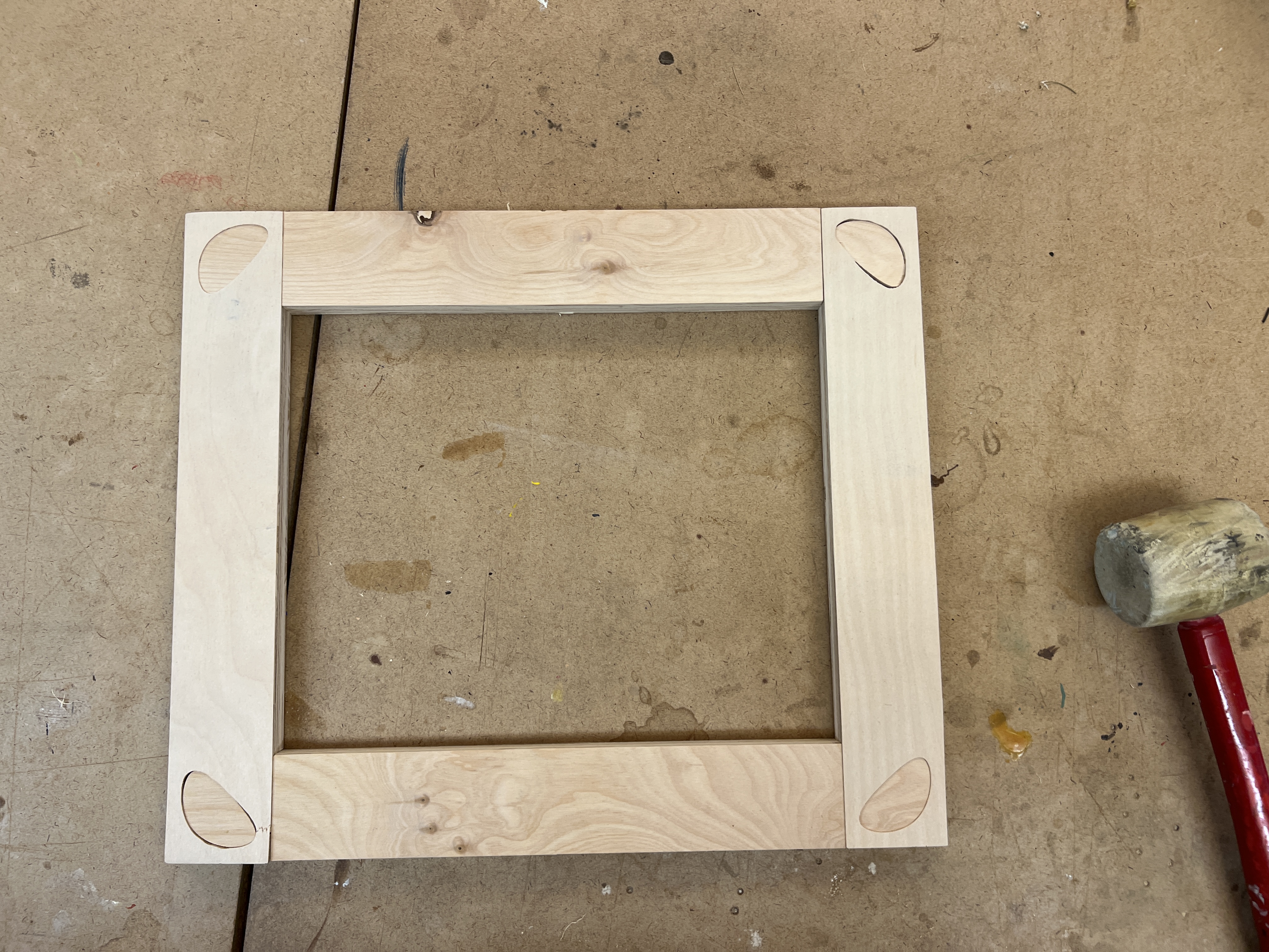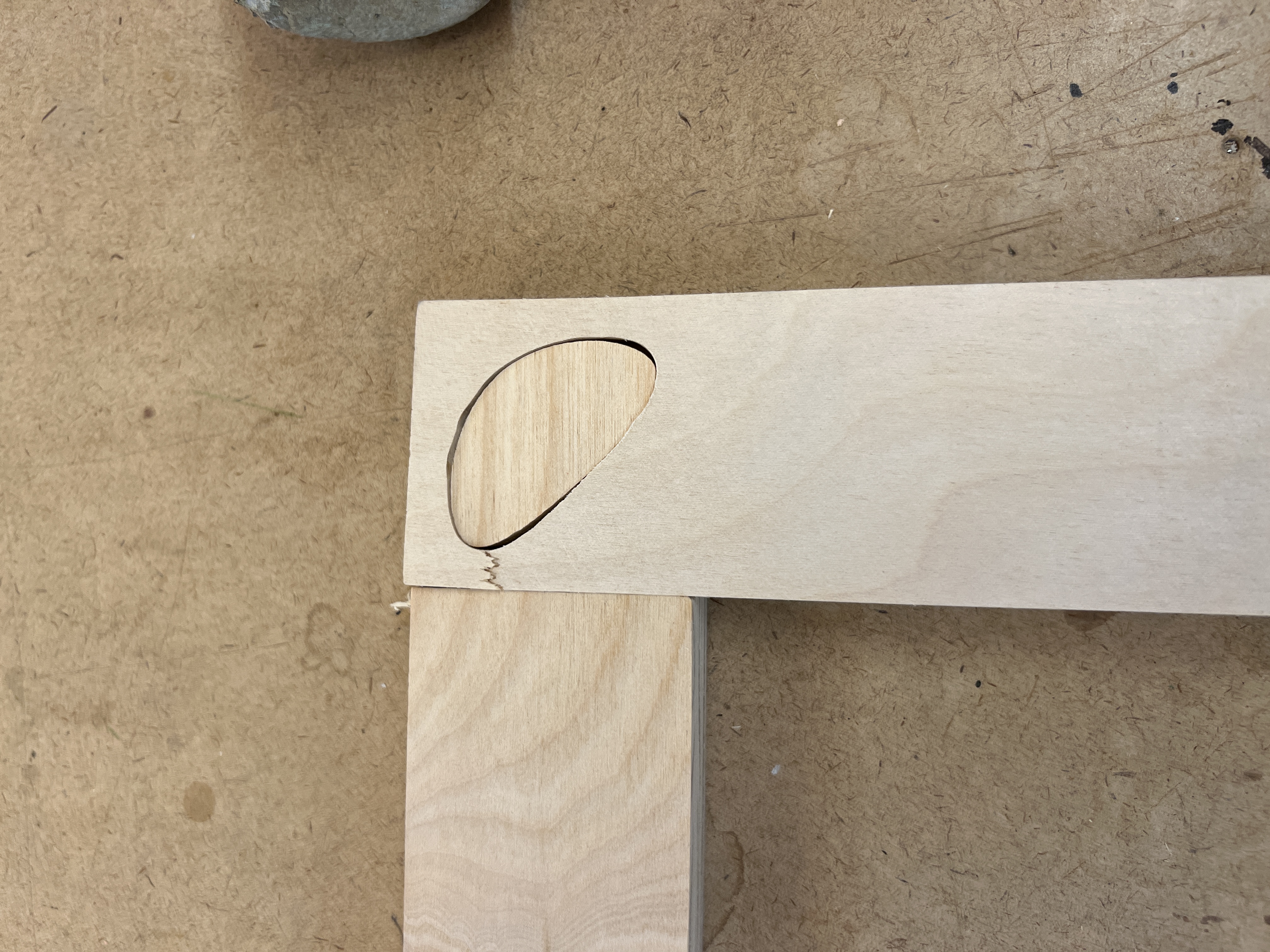 This is my file after some measurements. The plan is to make holes in long horizontal parts of the frame and then inserts in the shorter vertical sides. They would both need pockets about halfway through the depth of the plywood to fit in. Seems... good? The pocket fix should be good.