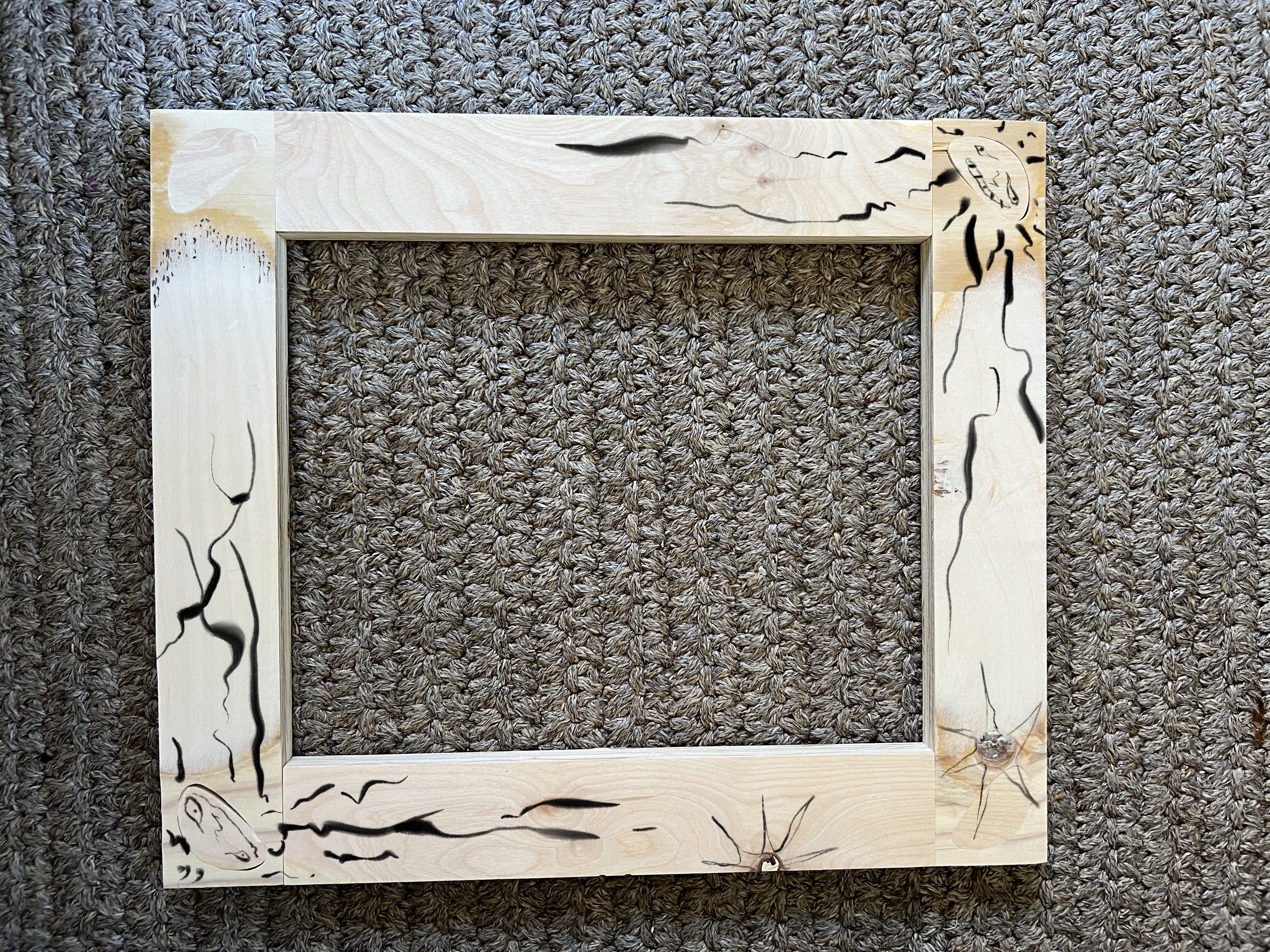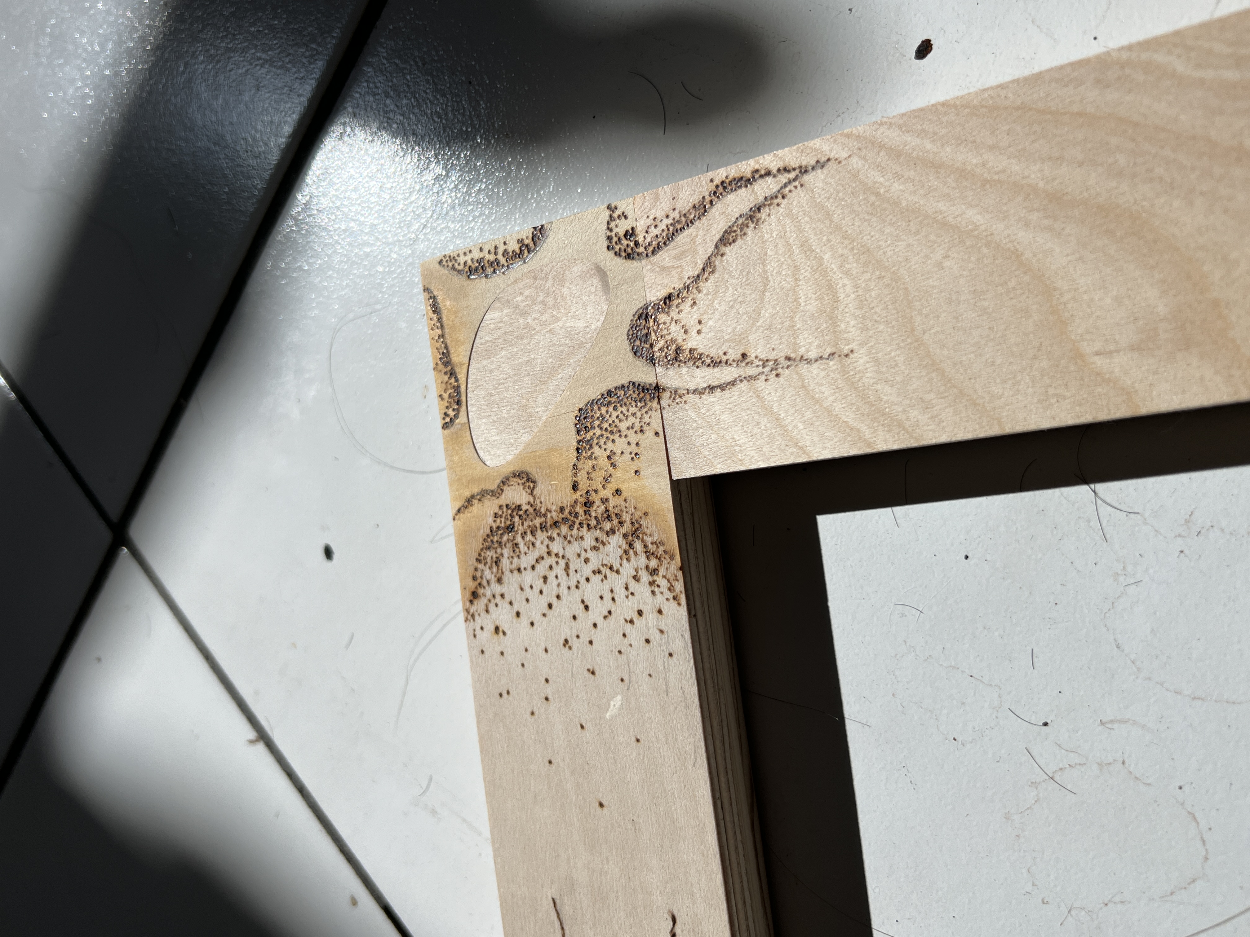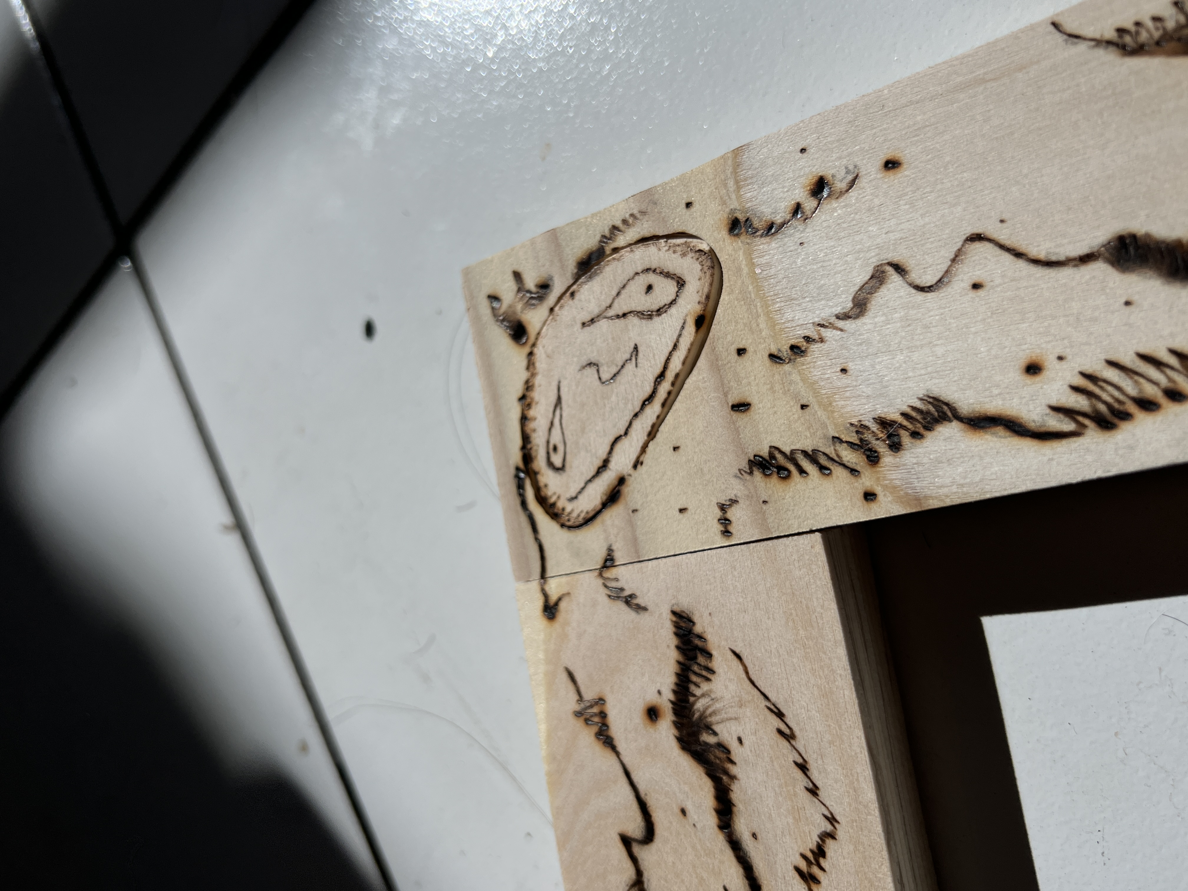 The plan, use my new cheapo wood burning pen to draw attention away from the mistakes or rather use them to my advantage. sketched in procreate.!